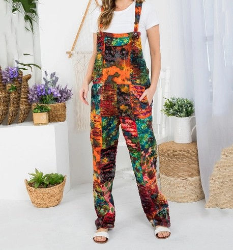 Tye Dye Slit Cut Overalls